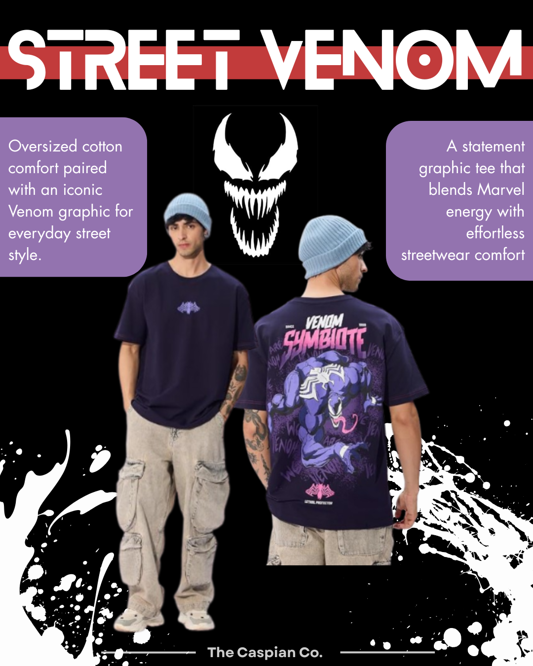 Venom Men and Boys Short Sleeves Round Neck Blue Graphic Printed Cotton Oversized T-Shirt